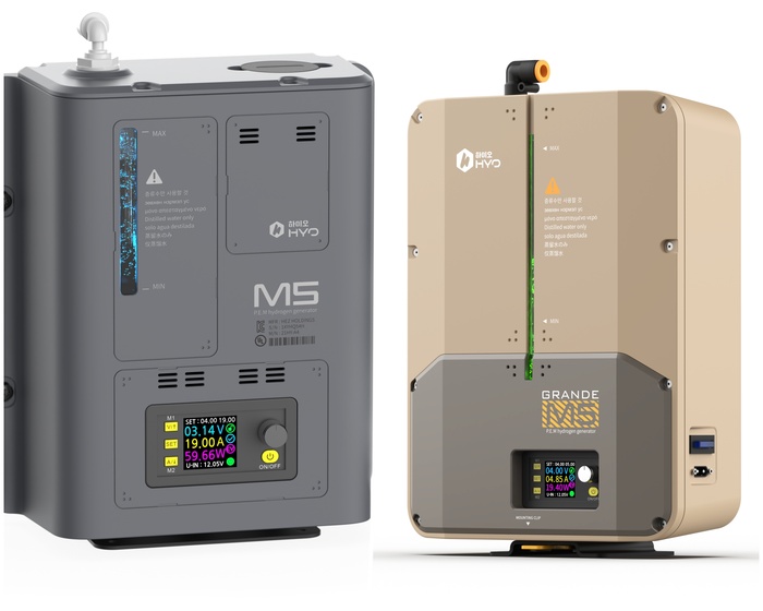Thiết bị sản xuất hydro mini “HYO” của Hez (trái) và thiết bị sản xuất hydro dung lượng lớn “HYO-M Grande”. / Ảnh: Hez cung cấp